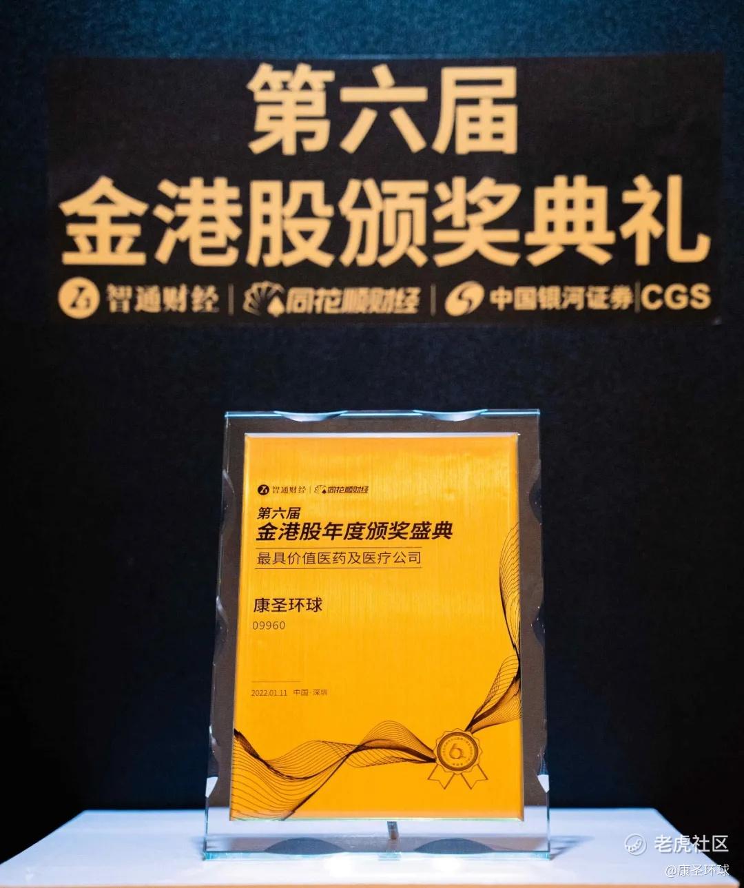 2022年1月11日,由国内领先的港美股资讯平台智通财经和同花顺财经共同主办的“2022年全球投资趋势论坛暨第六届金港股颁奖典礼”在深圳盛大举办,康圣环球在此次颁奖典礼上荣获“最具价值医药及医疗公司”奖项。