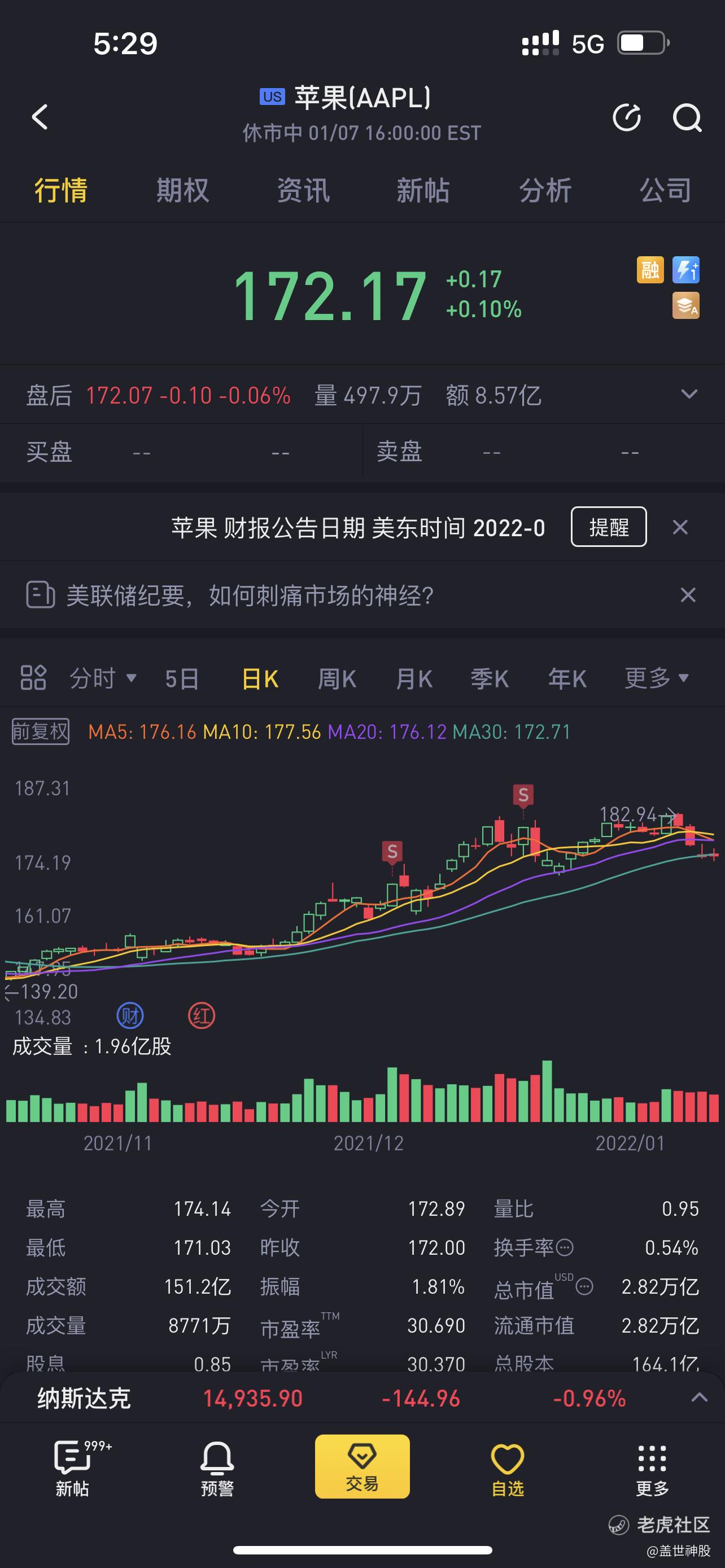 苹果收益40% 标普三倍看多20% 卖掉原因不是因为不看好,而是这波上涨已经到达预期,其二是觉得阿里应该已经估值杀到位了.3000亿的阿里个人感觉起码短期一年内大概率有反弹的50-100%的可能性.