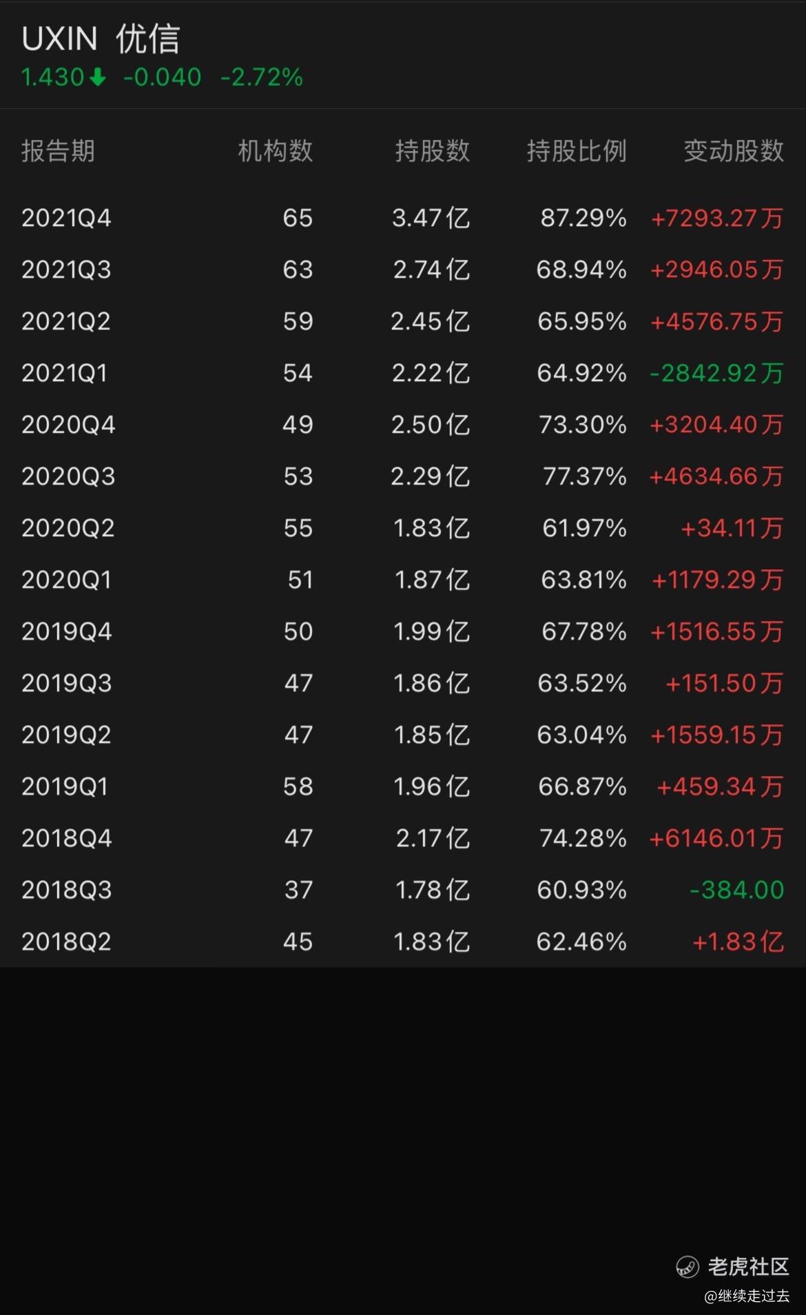 持股机构持续增加,持股比例87%,流通股只剩3200万股,优信这是什么节奏?