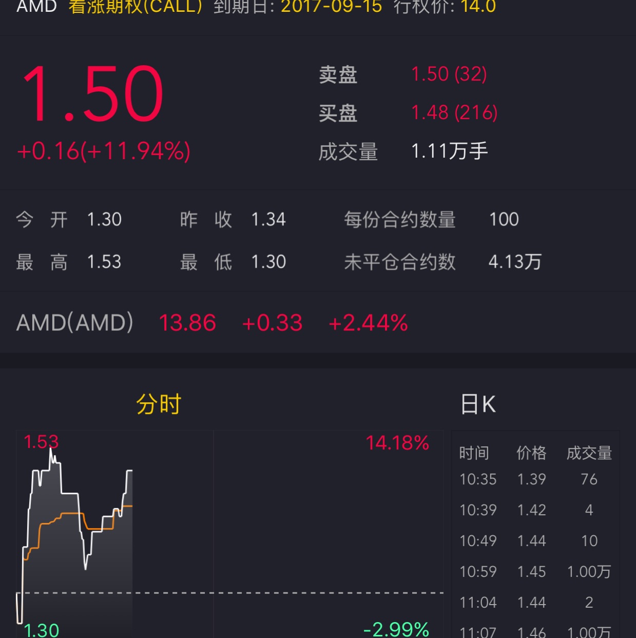 $AMD(AMD)$刚刚看到两个万手期权,什么概念...差不多300万美元,有钱,真有钱