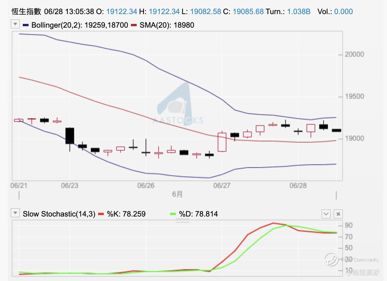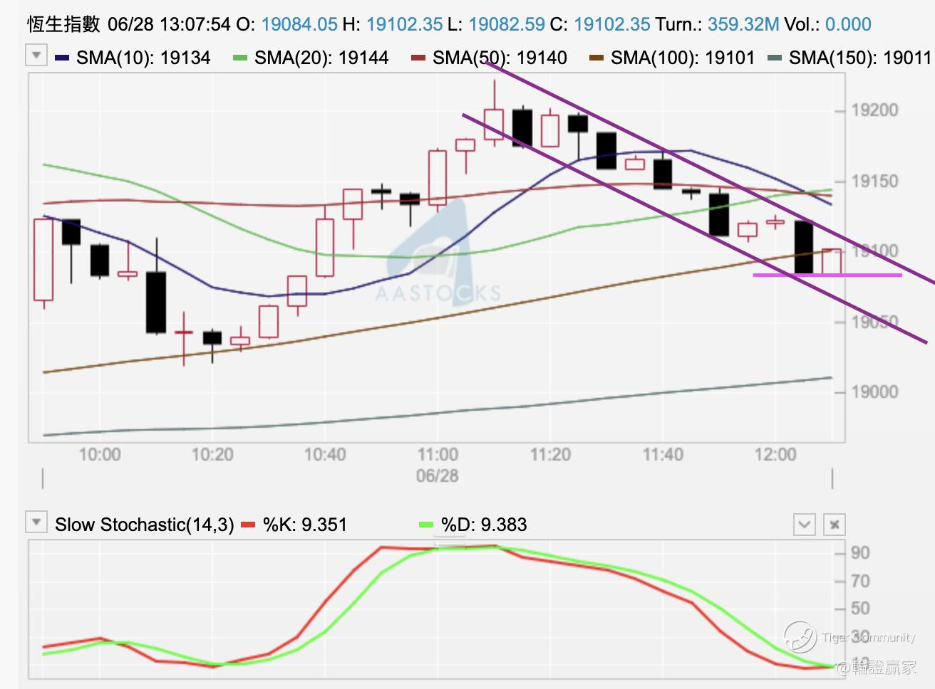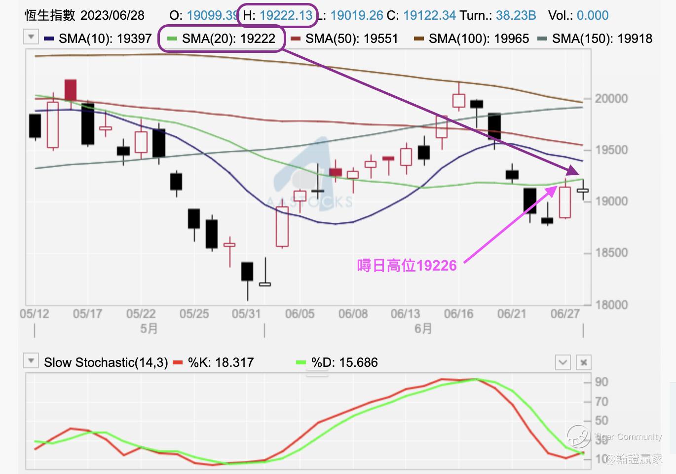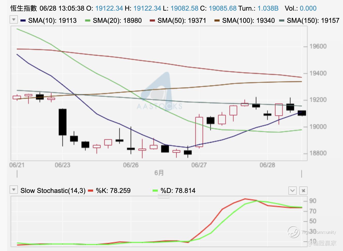 至于小时图条10线,系有穿过但已经变成下影线,指数摆位亦无低过10线以下,变相(67696)出唔到场。而小时图上见10小时线反过来变成指数嘅支持线,将恒指一下子推高至过埋150线,虽然上半场结束时见指数都只系得条上影线留喺150线之上,不过,如果下半场指数仍然靠住呢条10小时线的话,怕且恒指随时再挑战多次日线图20天线,唔止要高过佢,至少,要比㖊日收市价高4点,即见19230先至可以摆脱埋出「平顶」嘅可能。