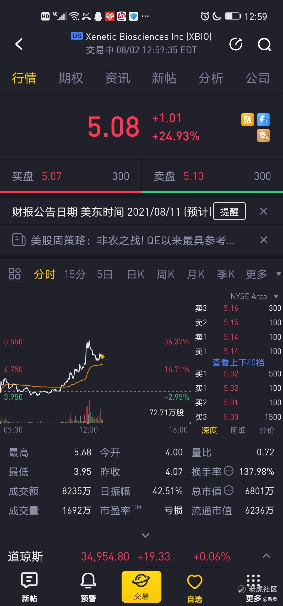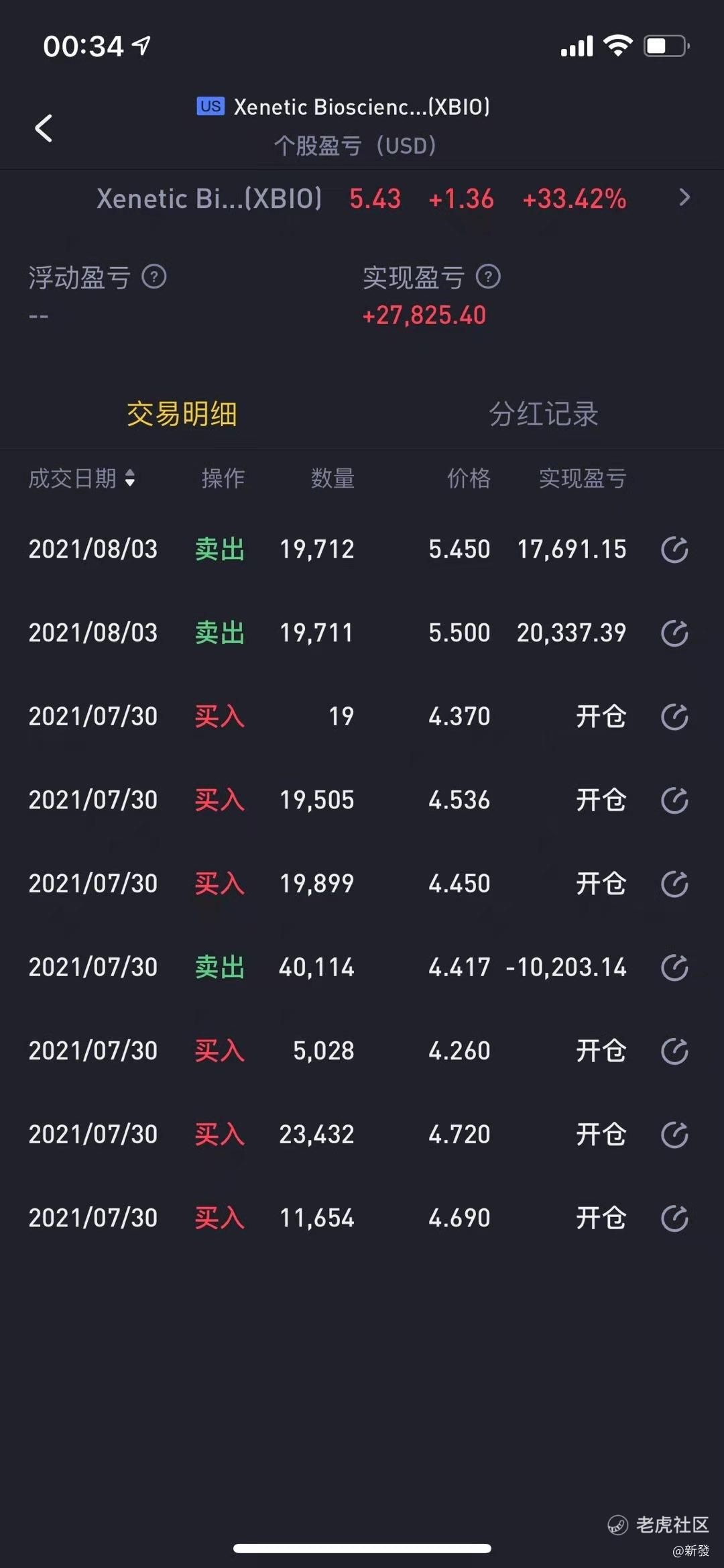 $Xenetic Biosciences Inc(XBIO)$可爱的妈妈在涨35个点的时候卖出了,如果不算上她 上周,随性买卖亏损的一万块,收益应该是37000左右。XBO上周7月30号的时候,我忘了在论坛发帖了,否则今天应该有很多人能吃到大肉,主要是太少点击量和赞也没什么人转发,所以我也没什么动力。