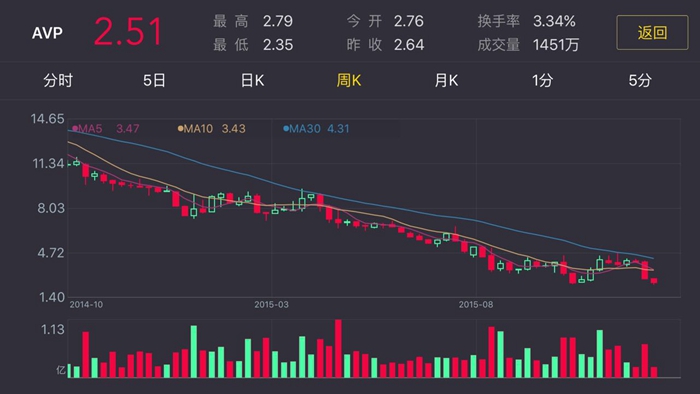 之前5日跌了35.79%,全年我都懒得算了,全是泪……雅芳的泪,再看周线,更是完美的下滑梯啊。