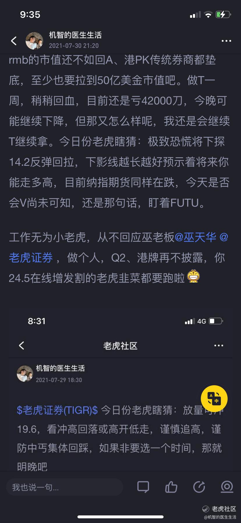 老虎波动大,估计有点不敢,怕反复被割[捂脸]