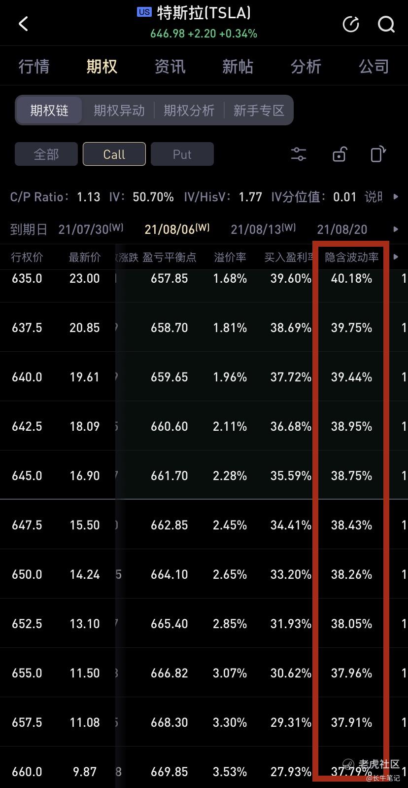 从期权上我们也可以看出来,特斯拉期权的IV值在不停的下跌,曾经高达90%多的场面已不复存在,市场也认为特斯拉要再暴涨暴跌并不容易见到。过去很长一段时间以来持有1手特斯拉的正股卖Covered Call,平均每周收入1k不是难事,而如今IV大跌,CC的收入也就越来越少啦