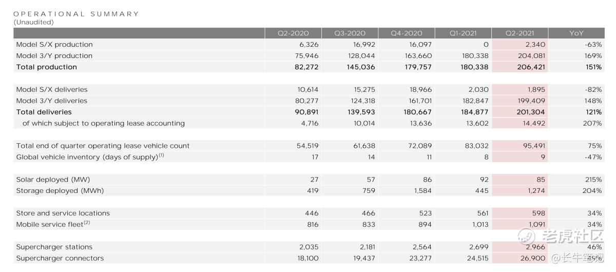 前几天特斯拉发布了财报,官方给到的重点数据如下: