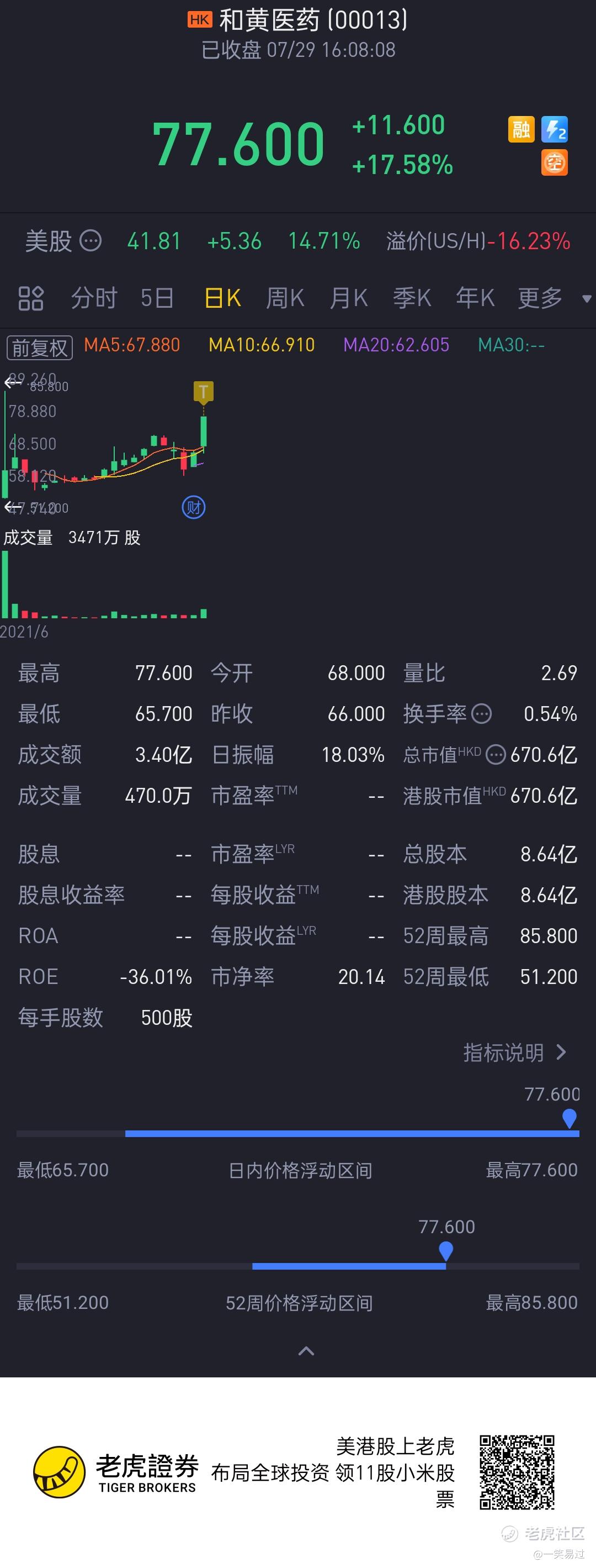 今天偷吃了一小口和黄医药,本来想长期拿着的,看看本金不够,购买后变成使用了杠杆,所以在上午收盘前涨到6%就解决了,没想到下午时继续涨到收盘17%$和黄医药(00013)$虽然操作没能吃到大块肉,小小一口也能解馋啊[微笑]