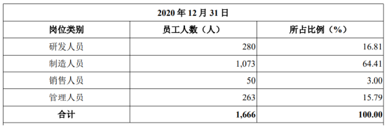 产能为4万片的样本只是一个勉强能达到盈亏平衡的主体。20多个新增主体的规模与它相比有大有小,我们以样本为中间值来衡量。下图是某个月产能为4万片的代工实体发布的招股书中员工组成。
