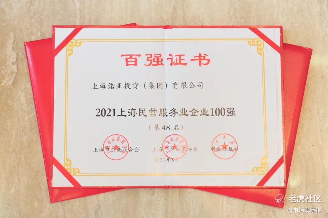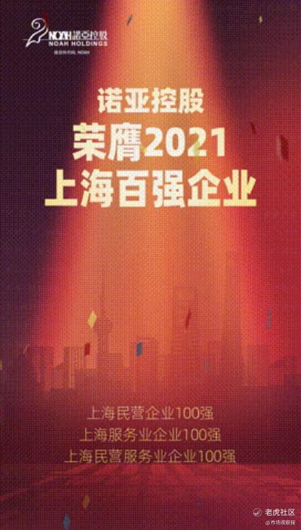 8月26日,2021上海民营企业百强榜单出炉,由上海市企业联合会、上海市企业家协会、上海市经济团体联合会和解放日报社联合发布,诺亚控股荣获“2021上海百强企业”称号。凭借在2020年超出预期的强劲业绩表现和健康发展韧劲,诺亚控股荣膺“上海民营企业100强”、“上海服务业企业100强”和“上海民营服务业企业100强”三重荣誉。