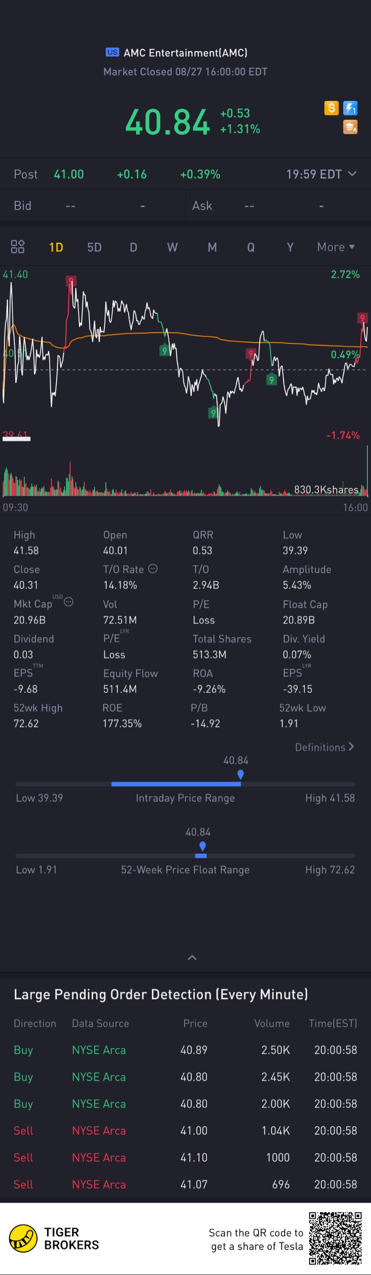 If I go to my day chart, it shows $AMC Entertainment(AMC)$going back down to $30 line. But hey, I might be wrong. Maybe you forgot the support line is still at $18. But what I do know is their short interest is slowly covering. Now at 15.99%.