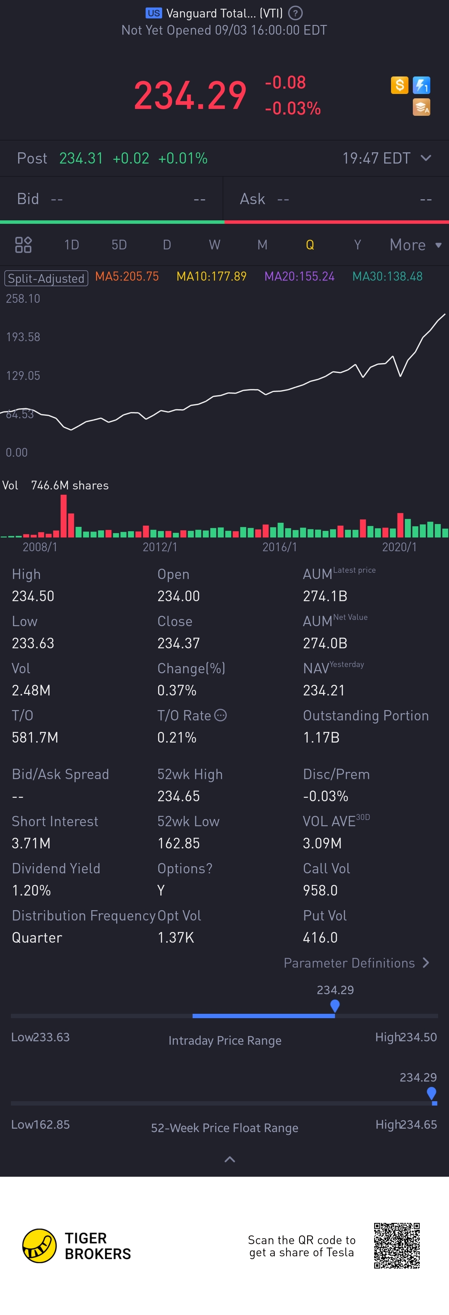 $Vanguard Total Stock Market Index Fund ETF Shares(VTI)$