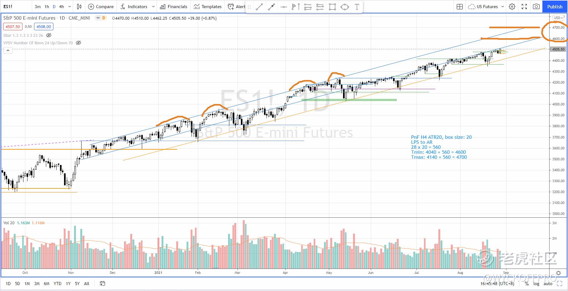 Not only $SP500指数主连 2109(ESmain)$ , $NQ100指数主连 2109(NQmain)$ and the $道琼斯指数主连 2109(YMmain)$ are ready to start the mark up phase. On top of that, even the laggard, Russell 2000 just broke above the intermediate resistance at 2250 and on its way to challenge the top of the trading range.