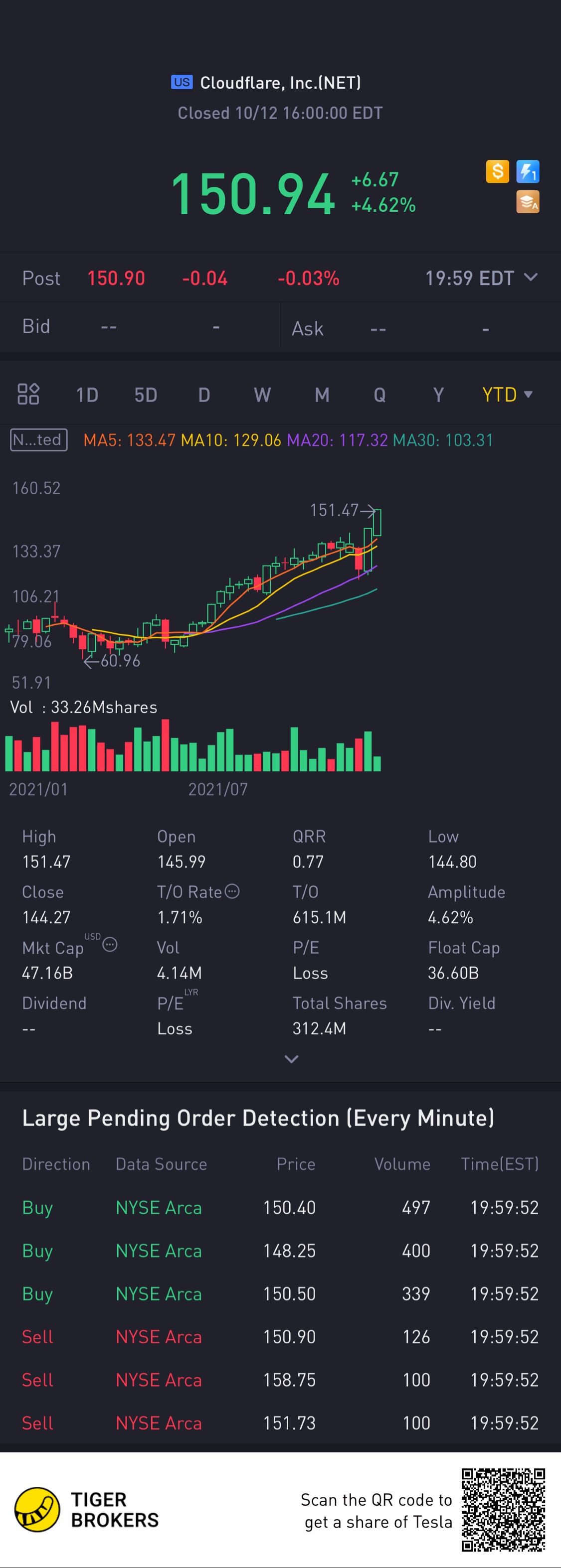 $Cloudflare, Inc.(NET)$Has been steady. Should have focus more on this stock. Wonder have I missed the chance? Anyone for this stock?