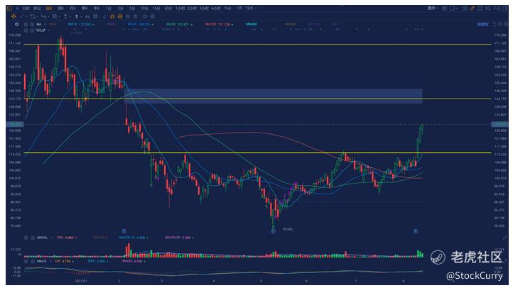 这支股票由于财报表现好在周三的时候突破了底部长达半年的整理,突破之后连续上涨了3天,这一波行情的目标价是139.7,如果能回调下来是个不错的买点,现在买入只会追高,应该学学杰西利弗莫尔,耐心的等待。