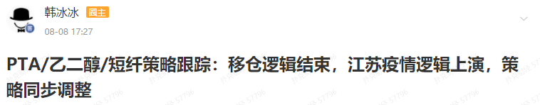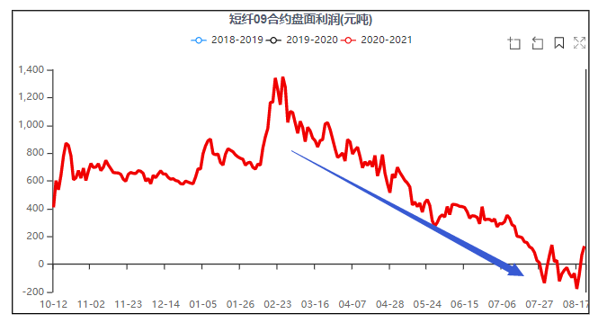我们对短纤利润是一直比较看好的,但同样也认为09合约可能来不及兑现,从09合约情况来看,怎么说呢,其实一直下跌,8月份叠加江苏的疫情,弱的大大超过了我们的预期。