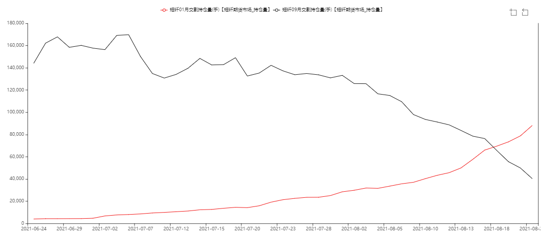 最近短纤9-1价差持续走正套,一方面是短纤工厂检修集中,近月受到供应收缩的支撑,近月强,远月弱,形成走套走势。