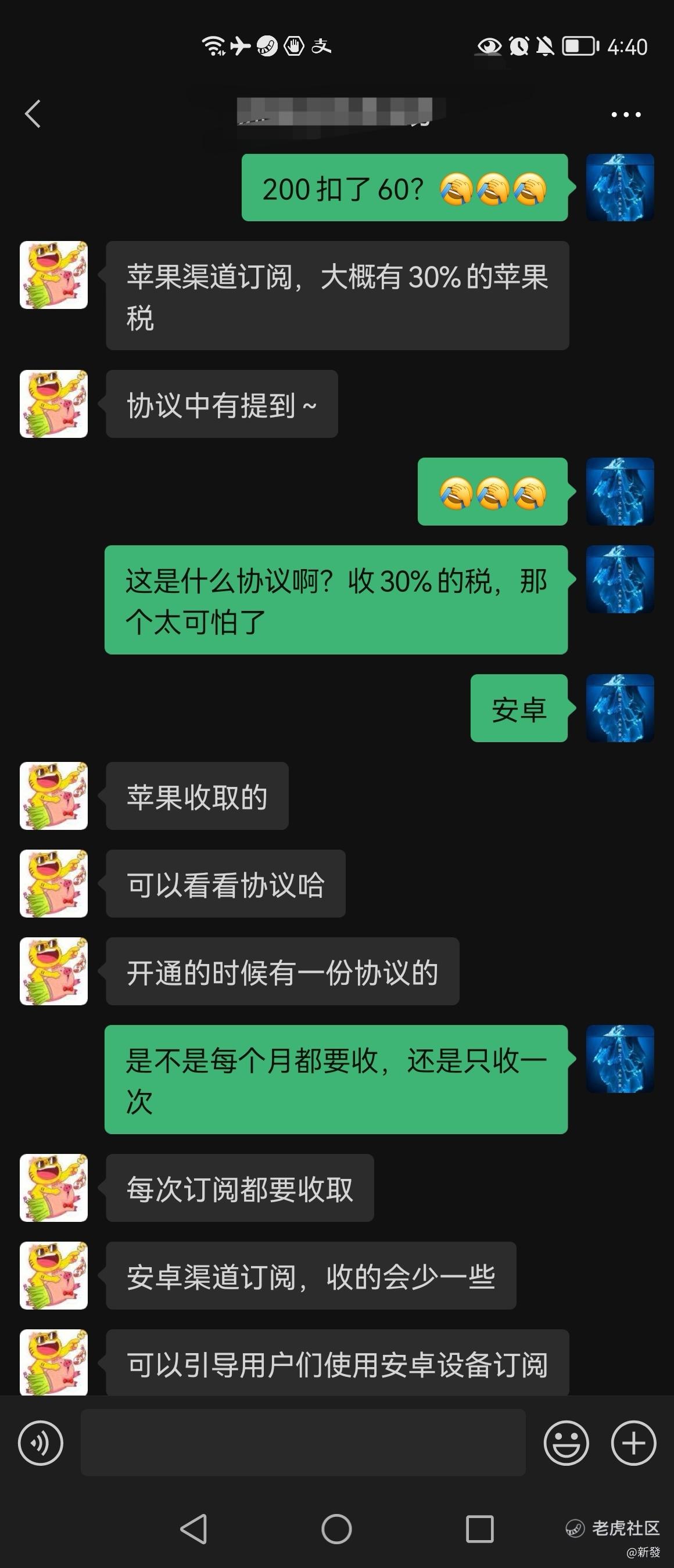 2、订阅用苹果手机的朋友订阅,会扣除新发的30%费用即:200-60(30%),大家认为苹果APP这是什么行为?而安卓或鸿蒙系统只收1%希望用苹果手机的朋友可以借助安卓设备来订阅。
