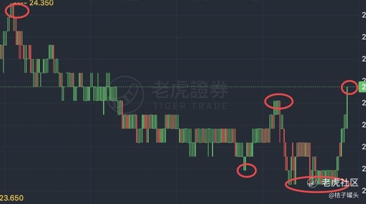 但抱着23-24是底,同时满足价差在1元的逻辑,在23.75买入了2000股,随后的走势还算符合预期,在24.2的时候挂单24.30,然后出了1500股。将底仓加了500股,没想到的是,这是全天唯一一次买入做T的机会,尾盘再度下跌到23.70,没下去,以为后盘会在24,结果没想到是24.05,这个确实有意思了,因为如果收24的话,1分线的上没破,如果收24.05的话,恰好破了。这个庄还真是比较搞,破了24.35,5分钟线能稳住?