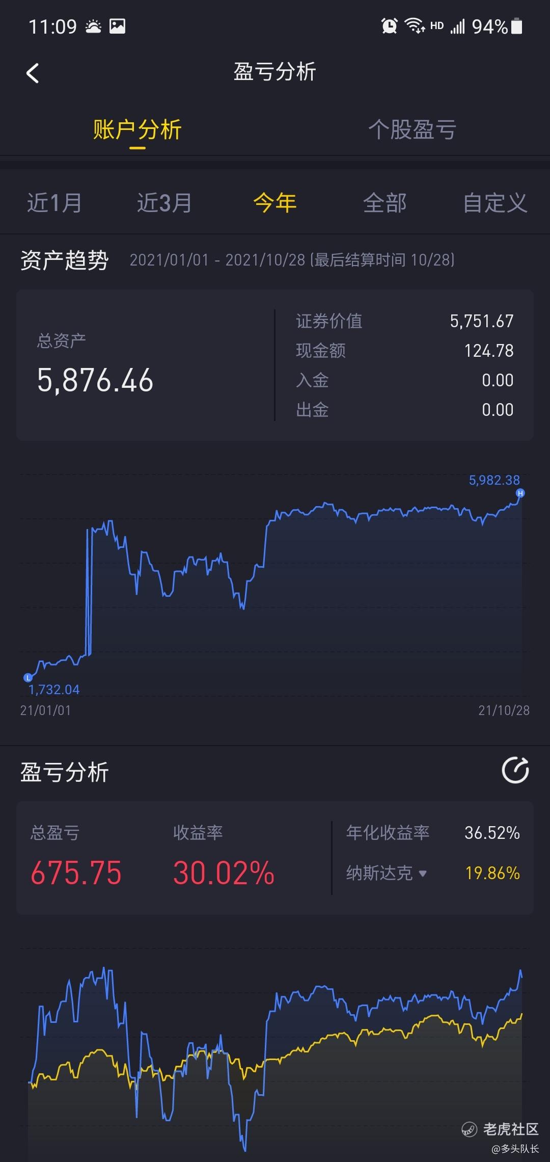 当这周最后一只中概老虎割肉,账户持仓也没有中概了。这回本之路堪称难受,终于总账户盈利了。今年年收益在1月资金的基础上是增长30%,这个数据完全没意义。