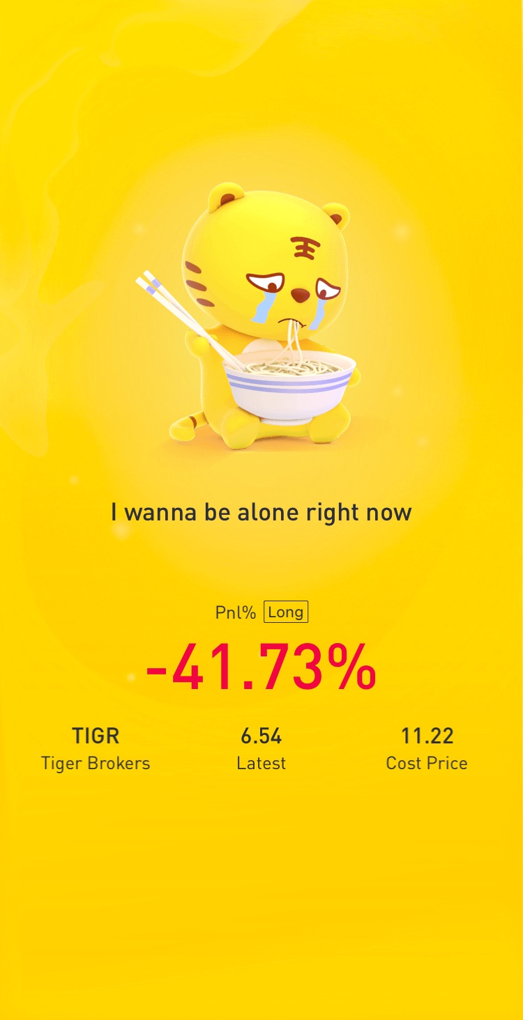 $Tiger Brokers(TIGR)$I am sure many of usare in this situation. If you sell you lose, if tou hold it is just paper loss. Tomorrow is November, let’s wait for update. Nothing to fearnow.