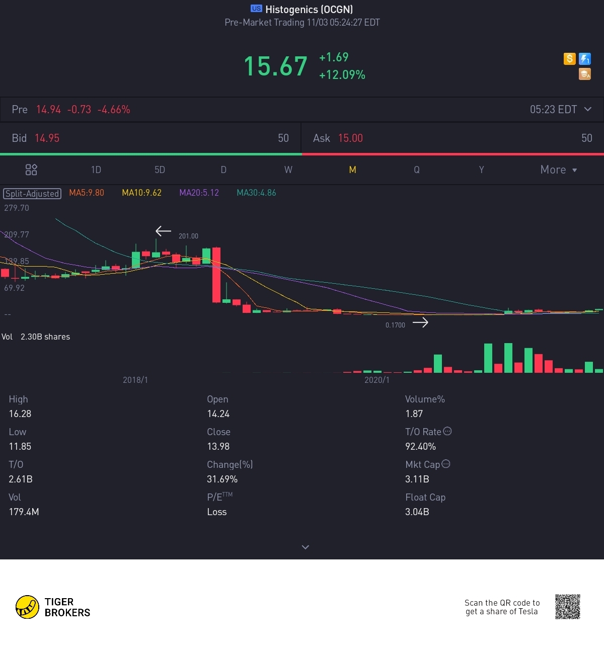 $Histogenics(OCGN)$
