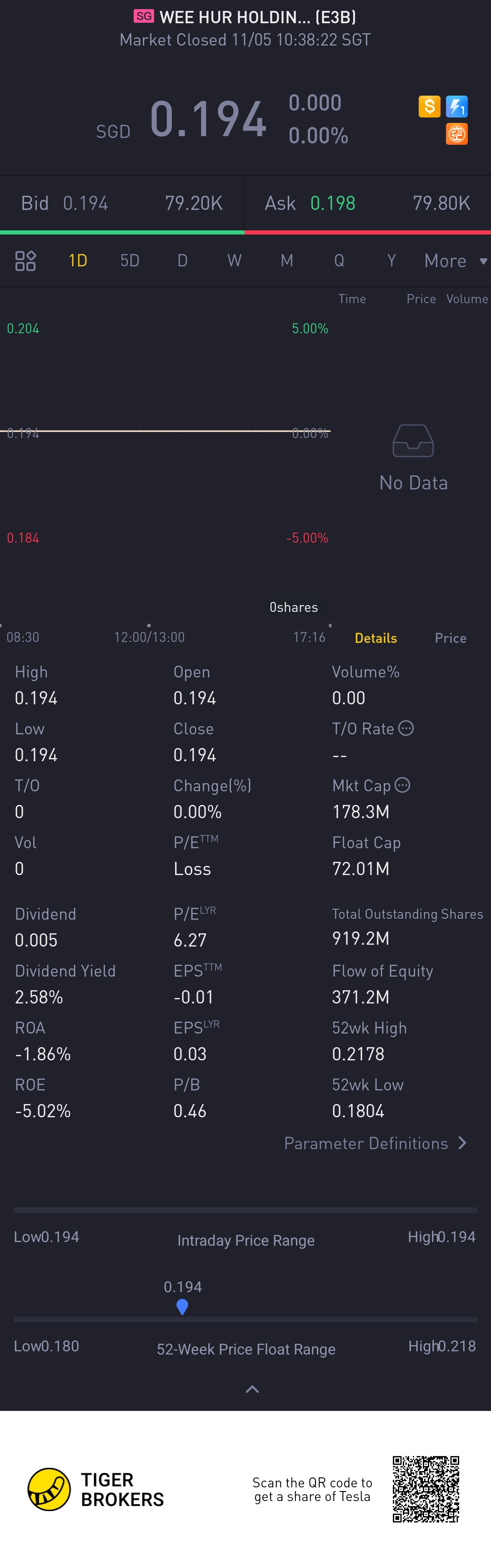 $WEE HUR HOLDINGS LTD.(E3B.SI)$