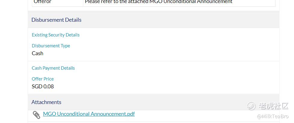 It is a very sad story for retail investor who hold the Sembcorp Marine long term. The offer price is almost 52 weeks low price, 52 weeks low 0.079, offer price 0.08. Since the offer is uncontional, retail investores have no choice.