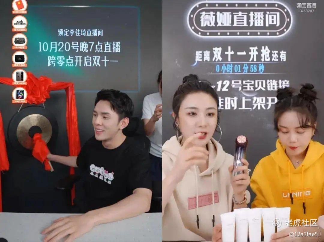 去年“双11”预售当天,同样是10月20日,李佳琦、薇娅两人的直播间销售额合计约78亿元,而今年两人再次打破纪录,合计销售额约为189亿元,同比增长142%。