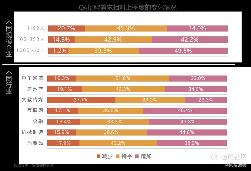 1、四季度人才竞争升级,企业招聘需求持续攀升,83%的企业招聘需求不变或上升