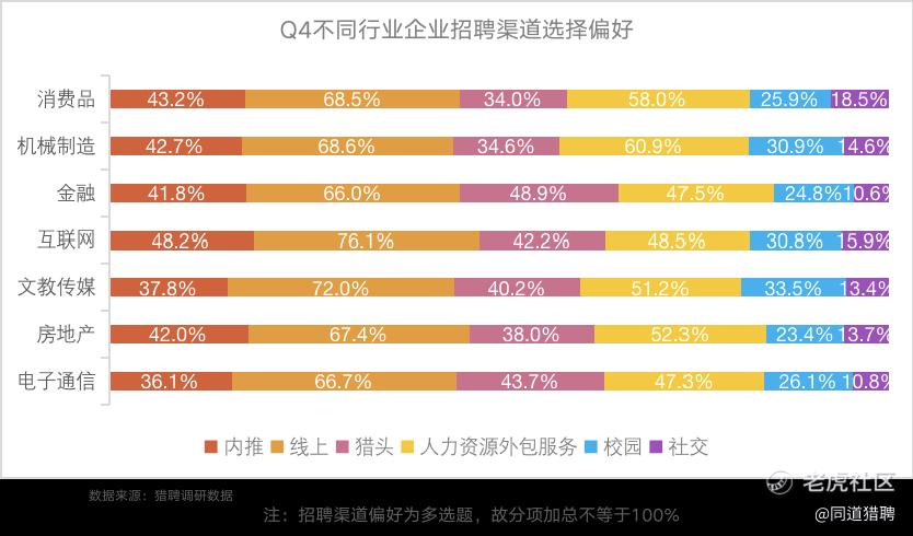 4、招聘渠道组合多元,渠道选择体现行业差异特性