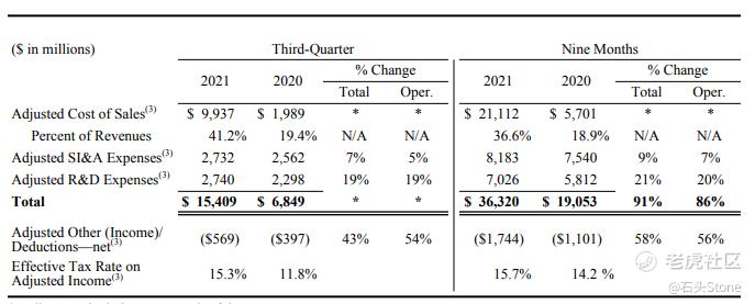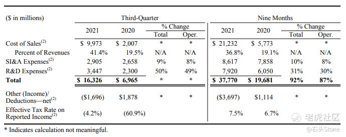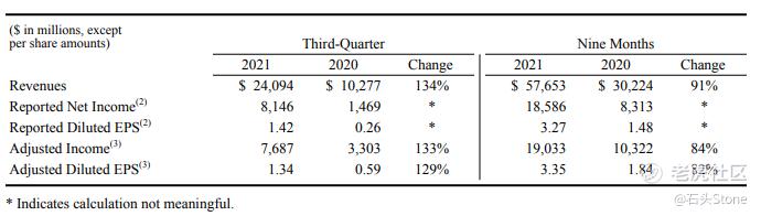 - 2021年第三季度稀释加权平均流通股的稀释每股收益为57.25亿股,增加9200万股,主要是由于为员工薪酬计划发行的股票。