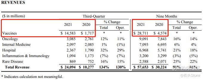 - 2021Q3营收,包含疫苗部分,至241亿美元,增长130%