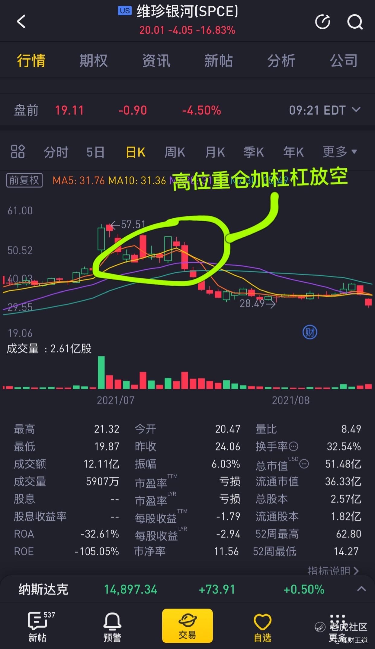 今年2个大额亏损,第一次在7月2号附近,重仓加杠杆做空维珍银河!