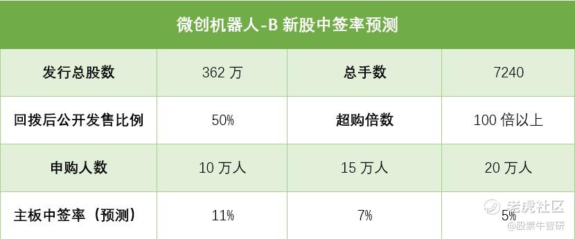 据公开资料整理,微创机器人公开发售362万股,每手500股,公开总发行手数7240手,甲乙组各3620手。