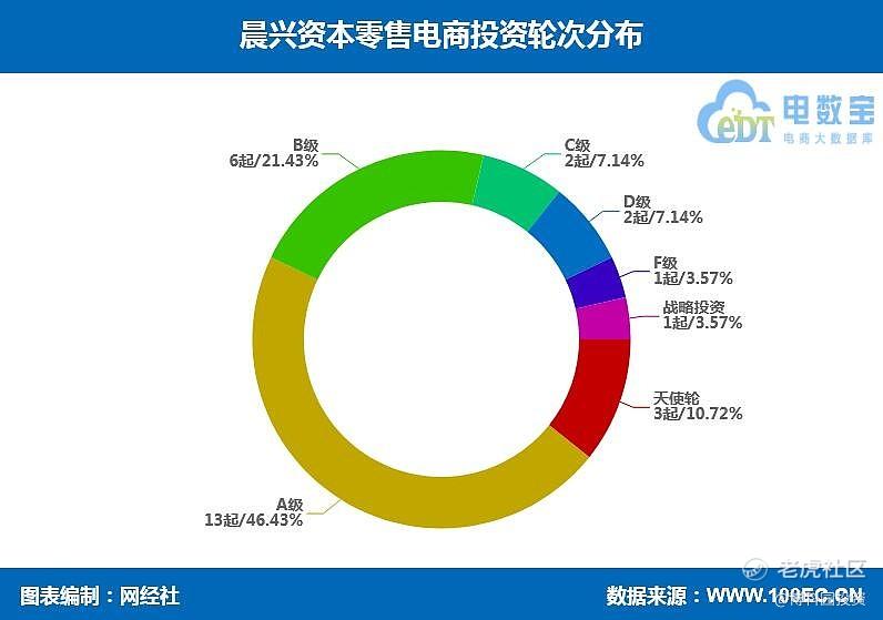 轮次数量分布上,在晨兴资本的投资中,A级13起,占46.43%;B级6起,占21.43%;C级和D级各2起,均占7.14%;F级和战略投资各1起,均占3.57%。