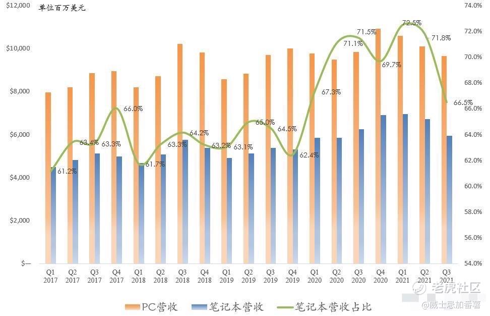 PC业务经营利润率34.3%,连续3个季度下滑,创下去年Q2以来新低。