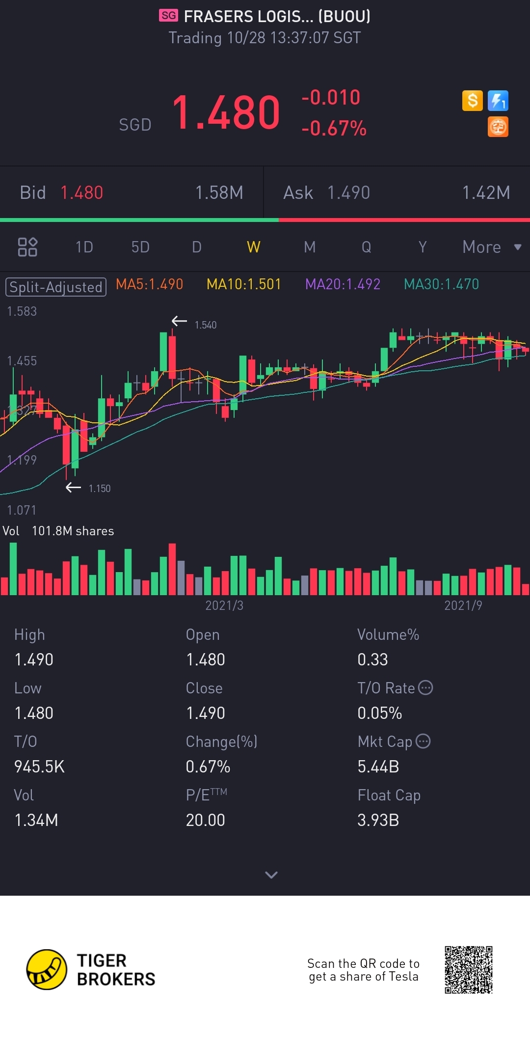 $FRASERS LOGISTICS & IND TRUST(BUOU.SI)$