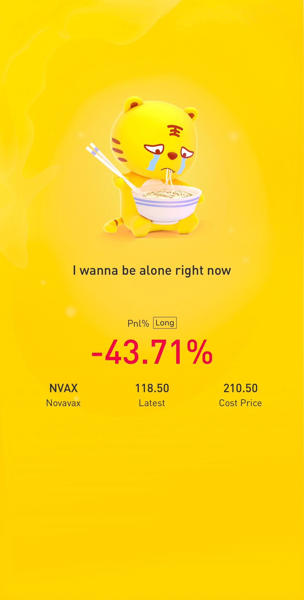 $Novavax(NVAX)$[Spurting] [Cry] [Spurting] [Cry] [Spurting] [Cry] [Spurting] [Cry] [Spurting] [Cry] Always knew you could lose money in stocks but always thought a stock won’t go close to zero aslong as you’re not buying some rubbish speculative stock. I guess I might have been wrong. Then again Novavax has proven to be a rubbish company time & time again. It was my bad for jumping on the Covid19 vax bandwagon, betting on the dark horse before doing my due research on it. Andmy bad for being greedy. My position was initiallyjust 190 & I was making profit trading it so I got greedier & averaged up even though it was getting out of my comfortable range. A few months ago someone in the Tiger community warned me about Novavax but I didn’t listen even though he/ she was right about the company’s past. #neveragain