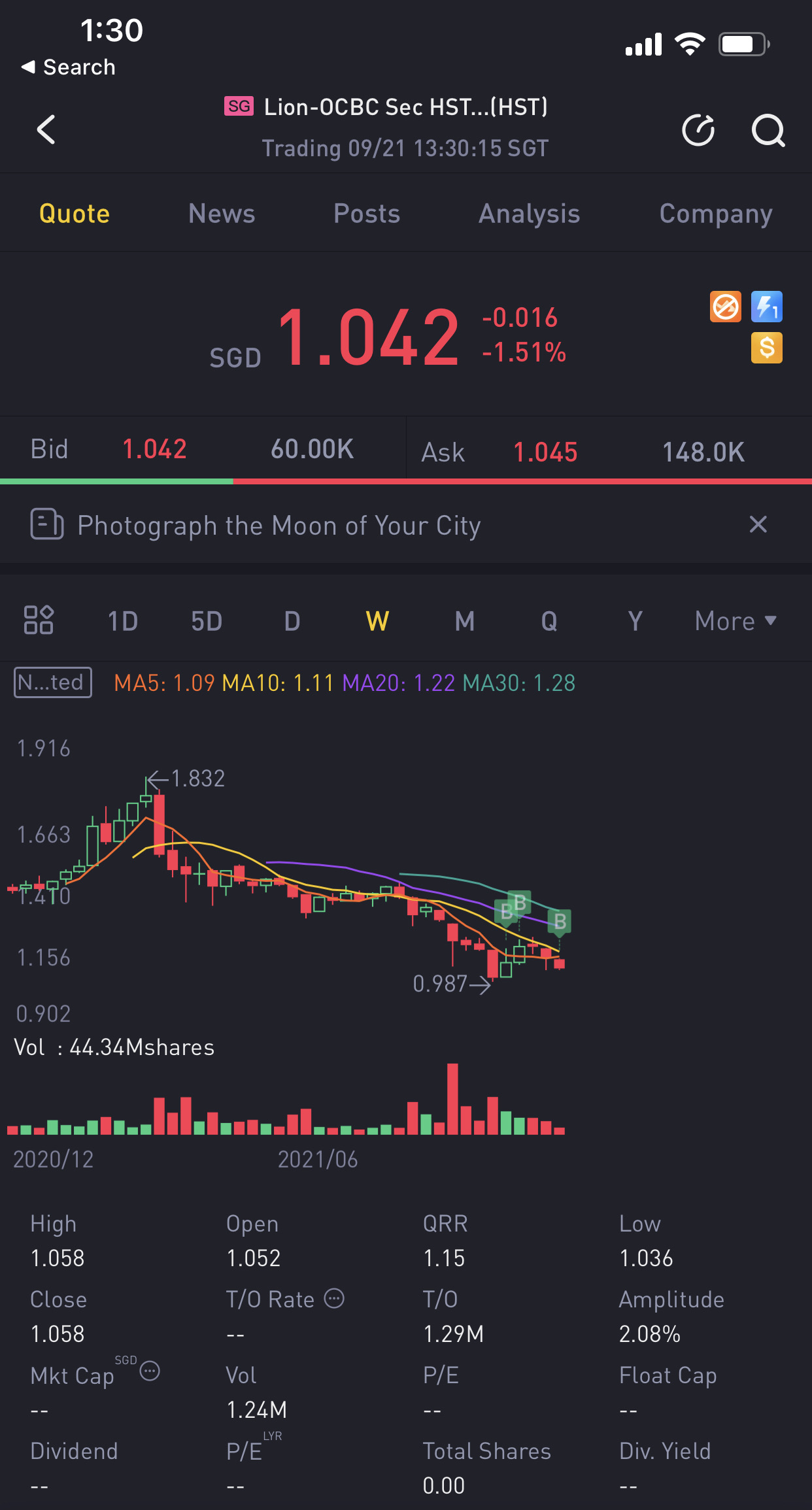 HST is the etf from lion policy the NTV is around hk 6.03 and convert to sgd is 1.20