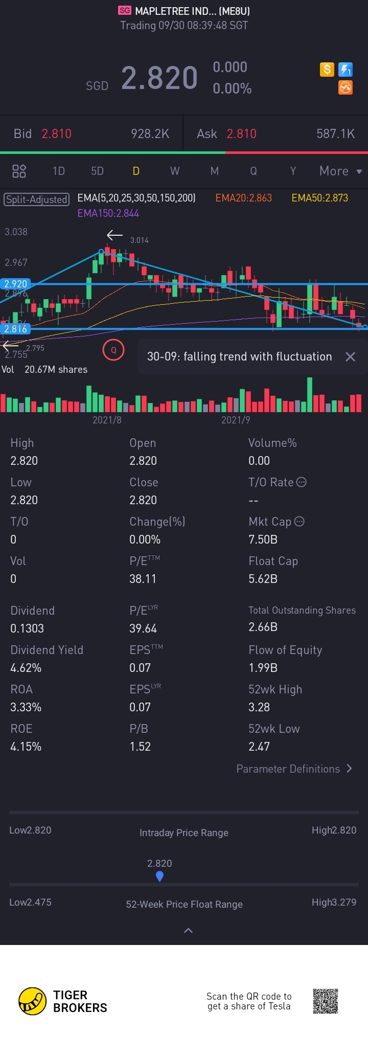 $MAPLETREE INDUSTRIAL TRUST(ME8U.SI)$price at lower price range support @2.82. Wait for price Rebound