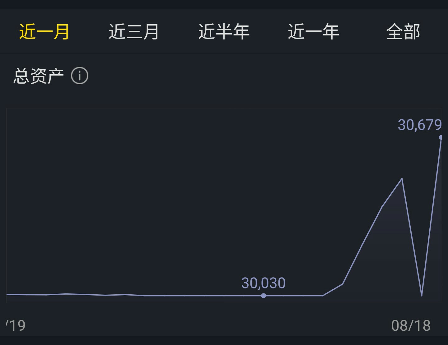 $阿里巴巴(BABA)$ 8月12号夜里买的阿里,然后就没有交易过,为啥总资产曲线图里,18号会掉回起点,新手在这里谢谢大家!