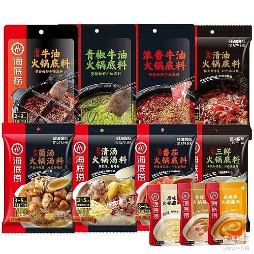 颐海国际可谓是和海底捞相生相伴,甚至比海底捞更早上市,以前专门为海底捞提供火锅底料和蘸料加工。并且海底捞无限期独家授权颐海国际使用海底捞商标,换句话说,超市里买的海底捞火锅底料其实就是颐海国际生产的。