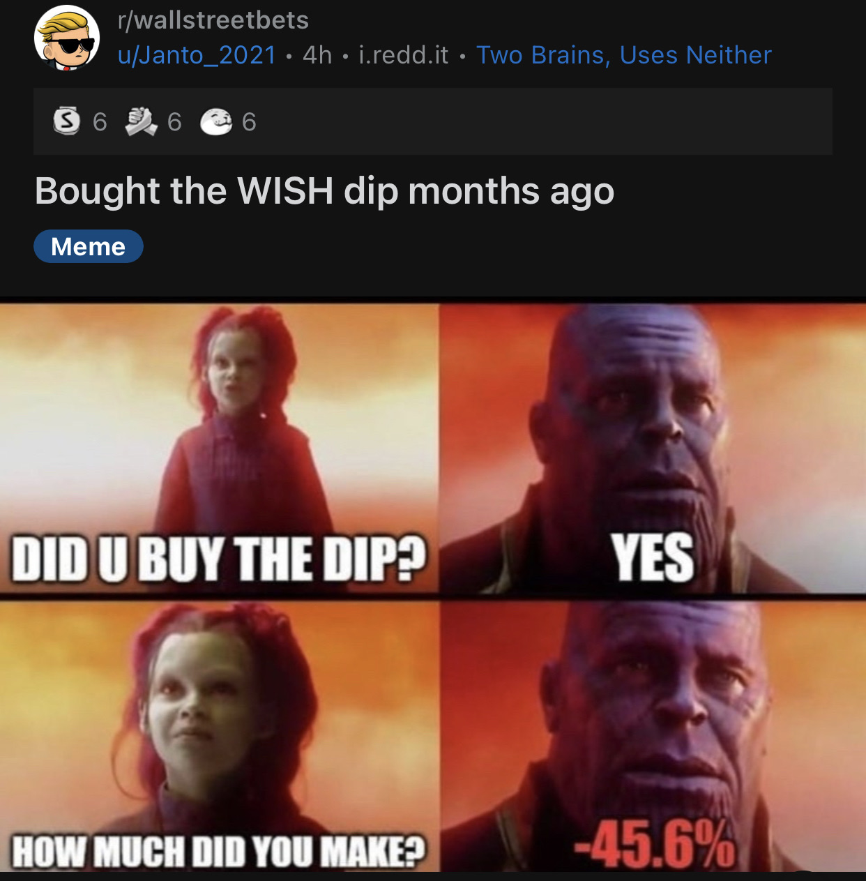 {"i18n":{"language":"zh_CN"},"detailType":1,"isChannel":false,"data":{"magic":2,"id":870466153,"tweetId":"870466153","gmtCreate":1636642667352,"gmtModify":1636643860035,"author":{"id":3495148713139258,"idStr":"3495148713139258","authorId":3495148713139258,"authorIdStr":"3495148713139258","name":"hitmankun","avatar":"https://static.tigerbbs.com/20bd4b8faedfaa1e2fd87783dcacf5fd","vip":1,"userType":1,"introduction":"","boolIsFan":false,"boolIsHead":false,"crmLevel":5,"crmLevelSwitch":0,"currentWearingBadge":{"badgeId":"228c86a078844d74991fff2b7ab2428d-2","templateUuid":"228c86a078844d74991fff2b7ab2428d","name":"投资总监虎","description":"证券账户累计交易金额达到30万美元","bigImgUrl":"https://static.tigerbbs.com/9d20b23f1b6335407f882bc5c2ad12c0","smallImgUrl":"https://static.tigerbbs.com/ada3b4533518ace8404a3f6dd192bd29","grayImgUrl":"https://static.tigerbbs.com/177f283ba21d1c077054dac07f88f3bd","redirectLinkEnabled":0,"hasAllocated":1,"isWearing":1,"stampPosition":0,"hasStamp":0,"allocationCount":1,"allocatedDate":"2023.07.14","exceedPercentage":"80.39%","individualDisplayEnabled":0},"individualDisplayBadges":[],"fanSize":7,"starInvestorFlag":false},"themes":[],"images":[{"img":"https://static.tigerbbs.com/c19689ca7a2c45c3e34e7292996b6eb4","width":"1242","height":"1263"}],"coverImages":[{"img":"https://static.tigerbbs.com/c19689ca7a2c45c3e34e7292996b6eb4","width":"1242","height":"1263"}],"extraTitle":"","html":"<html><head></head><body>\n<a href=\"https://laohu8.com/S/WISH\">$ContextLogic Inc.(WISH)$</a>[丢脸]<img src=\"https://static.tigerbbs.com/c19689ca7a2c45c3e34e7292996b6eb4\" tg-width=\"1242\" tg-height=\"1263\"></body></html>","htmlText":"<html><head></head><body>\n<a href=\"https://laohu8.com/S/WISH\">$ContextLogic Inc.(WISH)$</a>[丢脸]<img src=\"https://static.tigerbbs.com/c19689ca7a2c45c3e34e7292996b6eb4\" tg-width=\"1242\" tg-height=\"1263\"></body></html>","text":"$ContextLogic Inc.(WISH)$[丢脸]","highlighted":1,"essential":1,"paper":1,"likeSize":4,"commentSize":1,"repostSize":0,"favoriteSize":0,"link":"https://laohu8.com/post/870466153","repostId":0,"isVote":1,"tweetType":1,"viewCount":2872,"commentLimit":10,"likeStatus":false,"favoriteStatus":false,"reportStatus":false,"symbols":["WISH"],"verified":2,"subType":0,"readableState":1,"langContent":"CN","currentLanguage":"CN","warmUpFlag":false,"orderFlag":false,"shareable":true,"causeOfNotShareable":"","featuresForAnalytics":[],"commentAndTweetFlag":false,"andRepostAutoSelectedFlag":false,"upFlag":false,"length":30,"xxTargetLangEnum":"ZH_CN"},"commentList":[],"isCommentEnd":true,"isTiger":false,"isWeiXinMini":false,"url":"/m/post/870466153"}