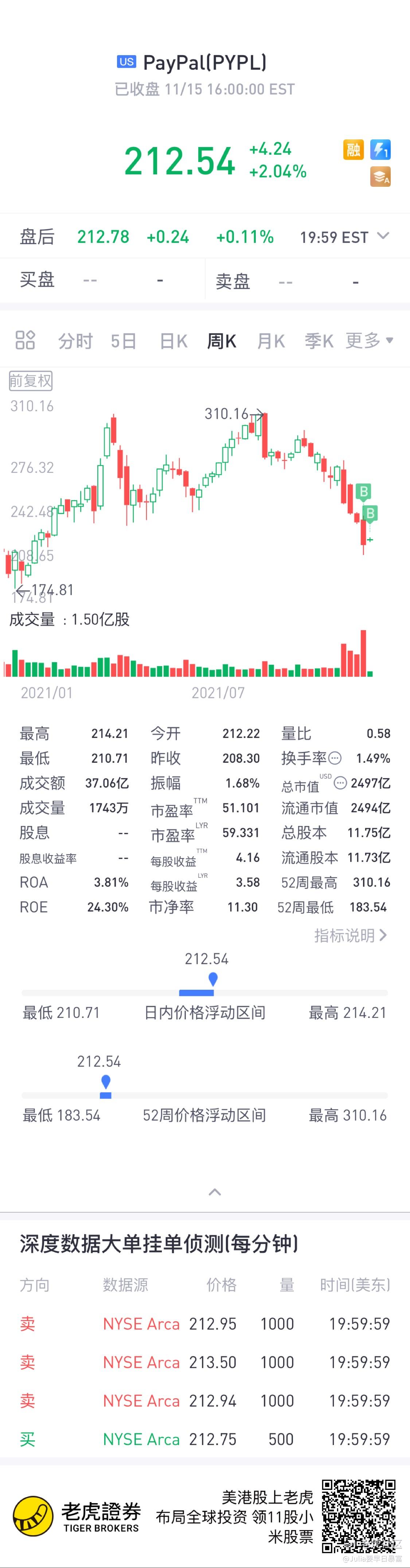 已经止跌回升,可以慢慢一点点抄。作为Paypal的受益用户,Black Friday要来了,必定有一波涨势!