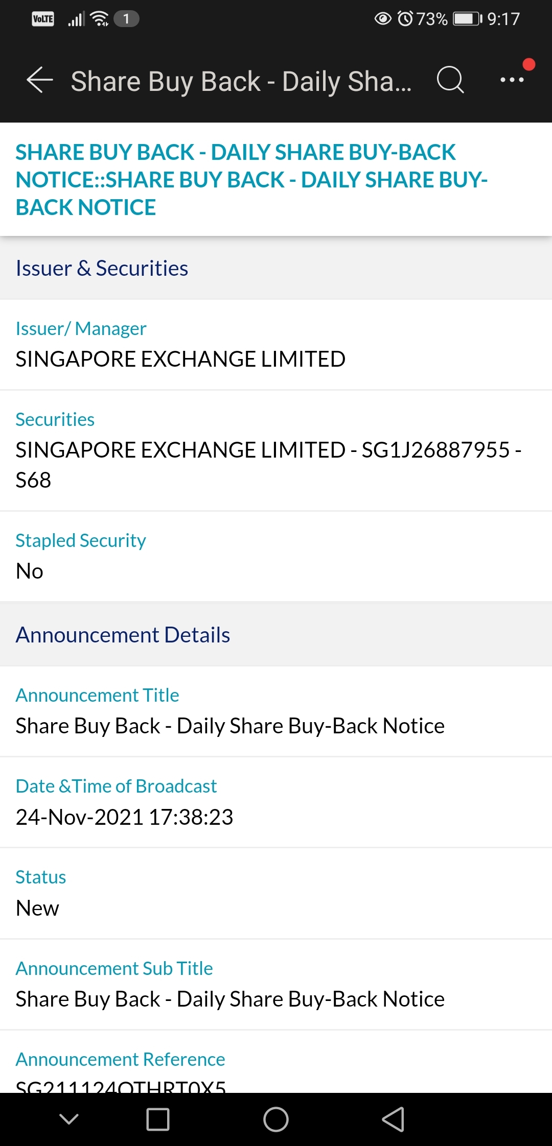$SINGAPORE EXCHANGE LIMITED(S68.SI)$