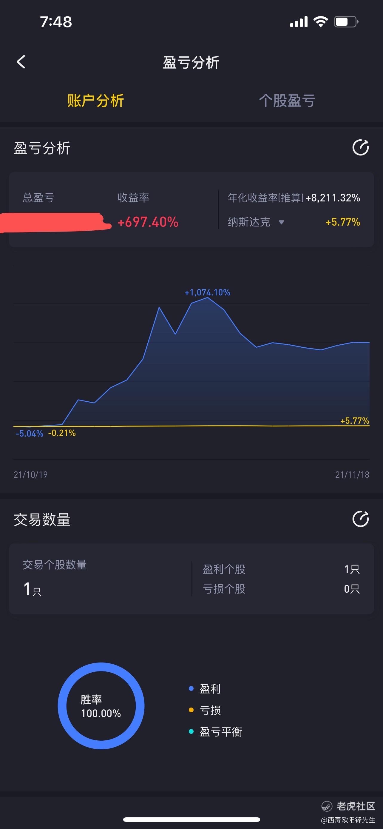$英伟达(NVDA)$上个月的今天,也就是2021年10月19日,我随手一个订单,直接使我的账户最高点翻了十倍有余。真正的高手一定是极少出手的,一旦出手,必当倚天长鸣。不能改变投资大局的交易,我是不会做的。(这个月仅交易一次,胜率是百分之百)$特斯拉(TSLA)$$苹果(AAPL)$$AMD(AMD)$$好市多(COST)$