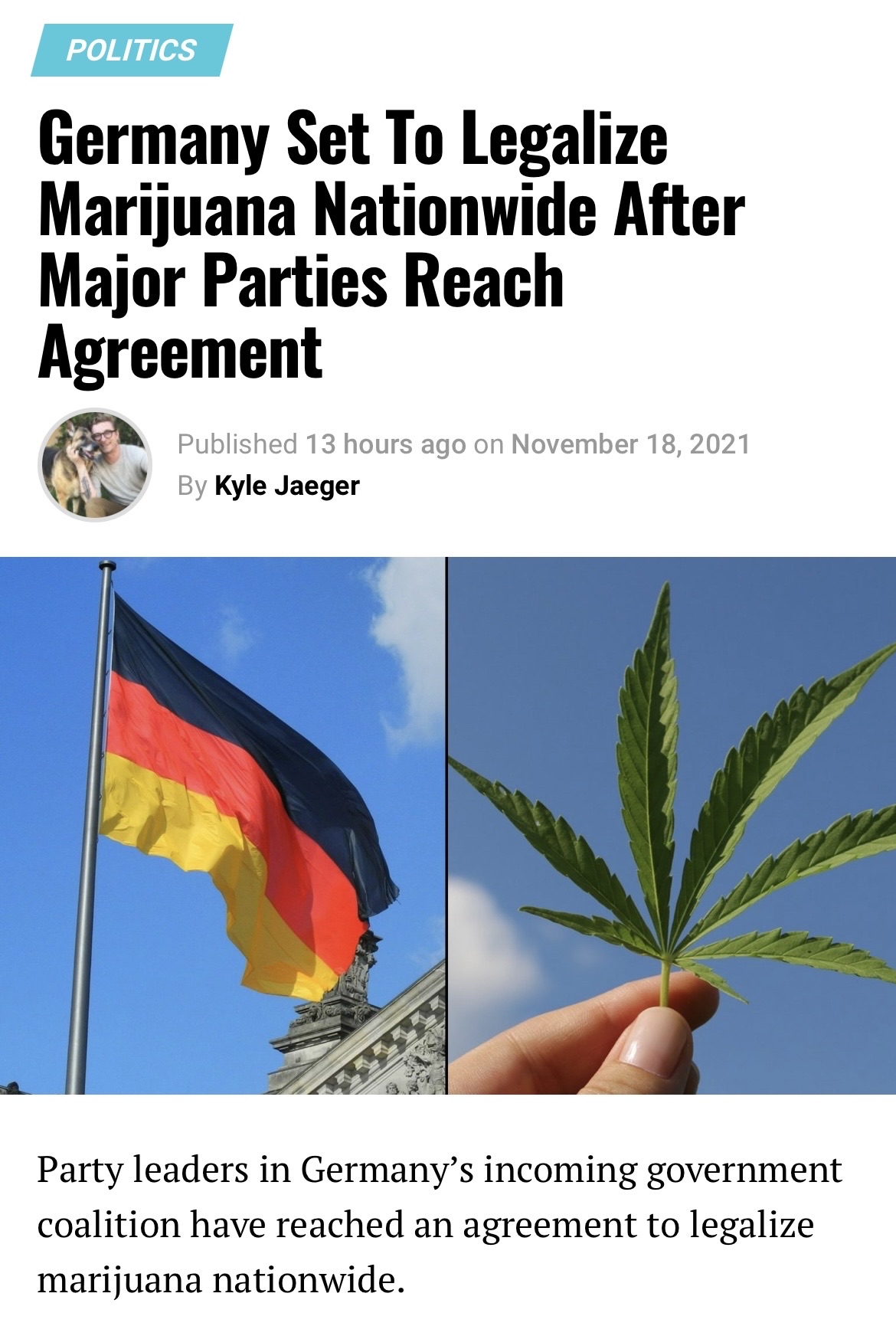 重磅利好: 德国政党达成协议要将大麻全国范围内合法化!