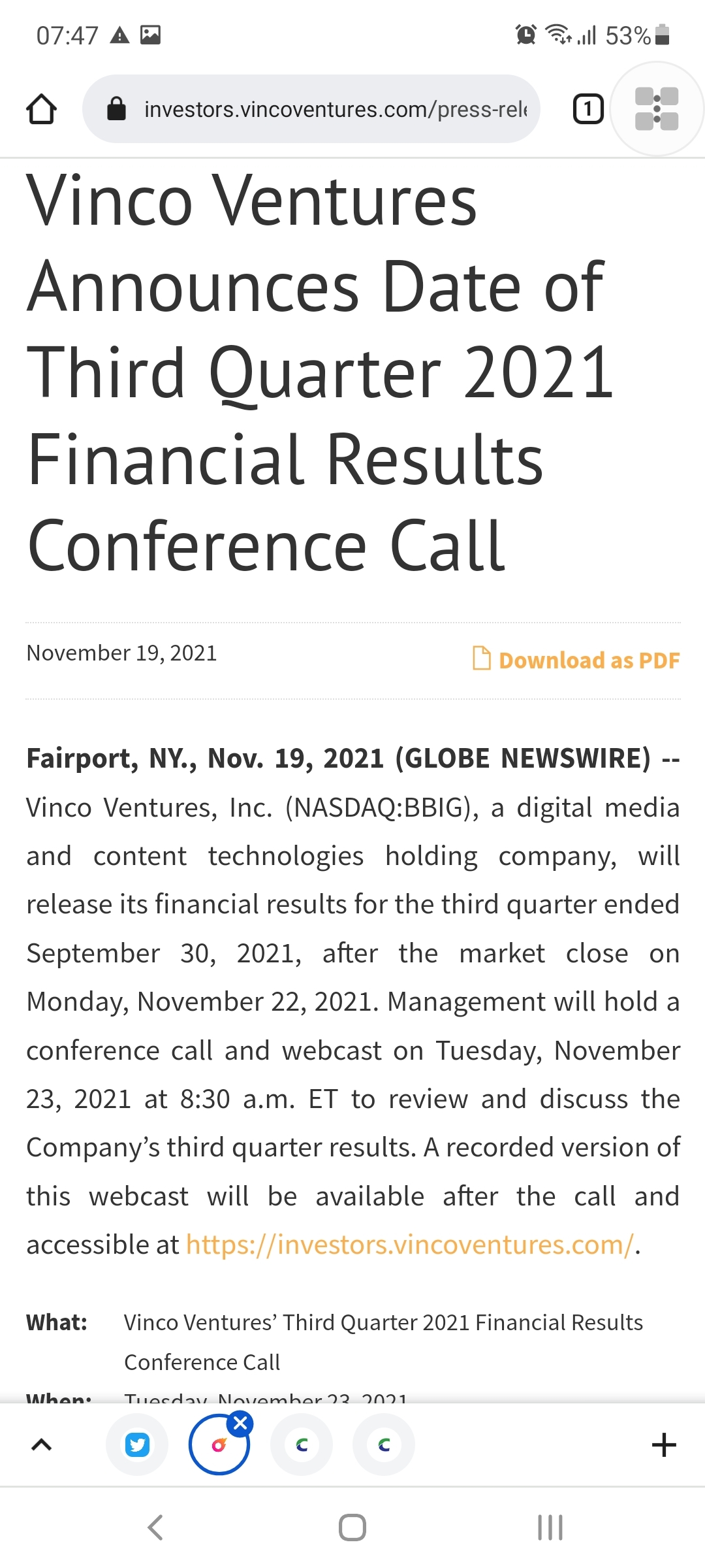 {"i18n":{"language":"zh_CN"},"detailType":1,"isChannel":false,"data":{"magic":2,"id":876760387,"tweetId":"876760387","gmtCreate":1637365708353,"gmtModify":1637365756466,"author":{"id":4096337009824130,"idStr":"4096337009824130","authorId":4096337009824130,"authorIdStr":"4096337009824130","name":"LWKJKK","avatar":"https://static.tigerbbs.com/c8865fe58cb1e2421bb5f60a39a8af3e","vip":1,"userType":1,"introduction":"","boolIsFan":false,"boolIsHead":false,"crmLevel":11,"crmLevelSwitch":0,"individualDisplayBadges":[],"fanSize":133,"starInvestorFlag":false},"themes":[],"images":[{"img":"https://static.tigerbbs.com/160970773f98e9d951166993686cd3cc","width":"1080","height":"2400"}],"coverImages":[{"img":"https://static.tigerbbs.com/160970773f98e9d951166993686cd3cc","width":"1080","height":"2400"}],"extraTitle":"","html":"<html><head></head><body><p><a href=\"https://laohu8.com/S/BBIG\">$Vinco Ventures, Inc.(BBIG)$</a>For infor.. Earning release later.</p><p><img src=\"https://static.tigerbbs.com/160970773f98e9d951166993686cd3cc\" tg-width=\"1080\" tg-height=\"2400\"></p></body></html>","htmlText":"<html><head></head><body><p><a href=\"https://laohu8.com/S/BBIG\">$Vinco Ventures, Inc.(BBIG)$</a>For infor.. Earning release later.</p><p><img src=\"https://static.tigerbbs.com/160970773f98e9d951166993686cd3cc\" tg-width=\"1080\" tg-height=\"2400\"></p></body></html>","text":"$Vinco Ventures, Inc.(BBIG)$For infor.. Earning release later.","highlighted":1,"essential":1,"paper":1,"likeSize":11,"commentSize":4,"repostSize":0,"favoriteSize":0,"link":"https://laohu8.com/post/876760387","repostId":0,"isVote":1,"tweetType":1,"viewCount":1365,"commentLimit":10,"likeStatus":false,"favoriteStatus":false,"reportStatus":false,"symbols":["BBIG"],"verified":2,"subType":0,"readableState":1,"langContent":"CN","currentLanguage":"CN","warmUpFlag":false,"orderFlag":false,"shareable":true,"causeOfNotShareable":"","featuresForAnalytics":[],"commentAndTweetFlag":false,"andRepostAutoSelectedFlag":false,"upFlag":false,"length":56,"xxTargetLangEnum":"ZH_CN"},"commentList":[],"isCommentEnd":true,"isTiger":false,"isWeiXinMini":false,"url":"/m/post/876760387"}