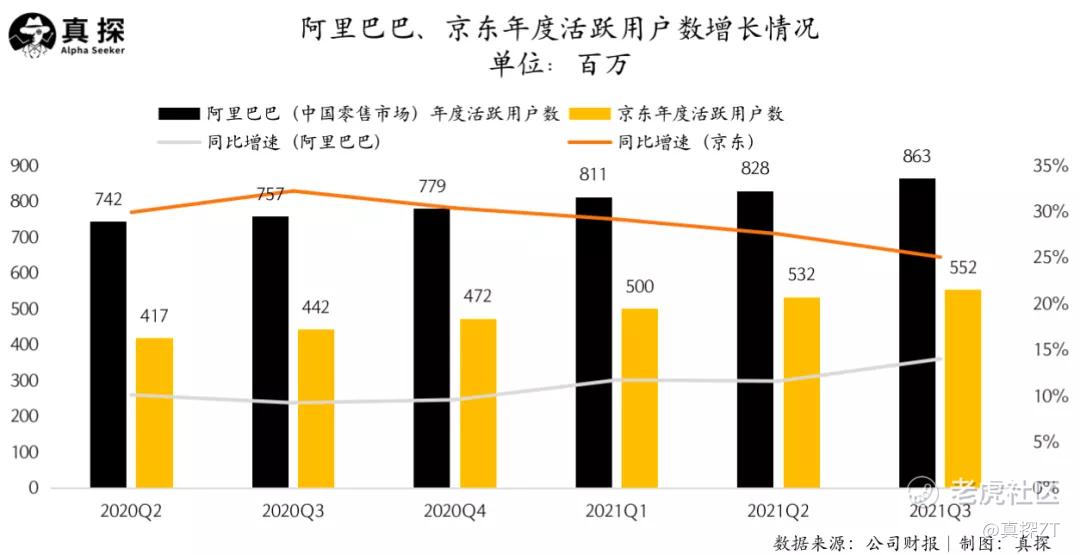 股价分化是结果。对比两份财报,京东阿里三季度的表现在许多维度上都有不同的表现。