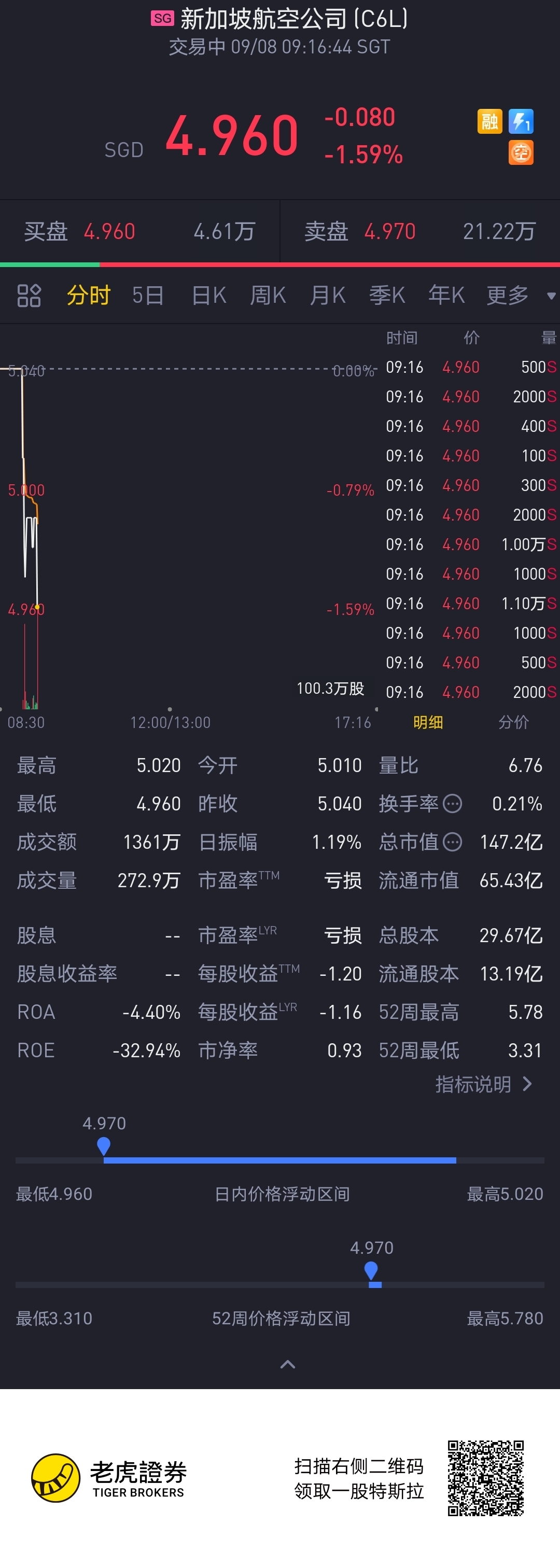 $新加坡航空公司(C6L.SI)$